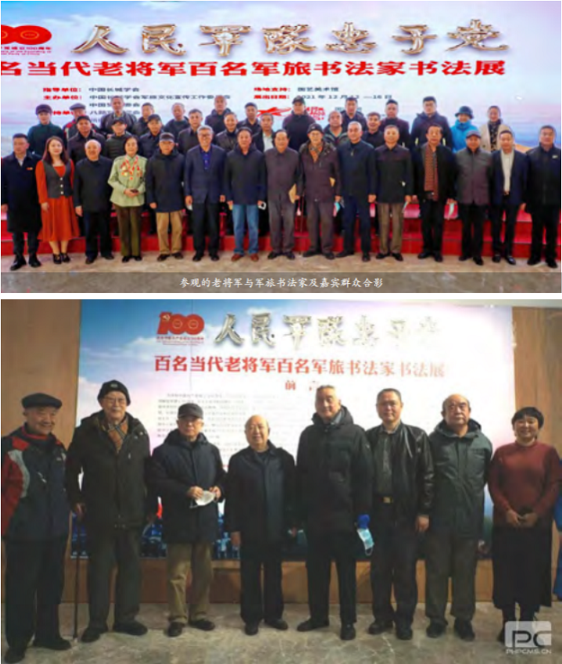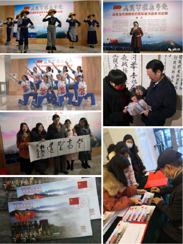 为庆祝中国共产党成立 100 周年、中华人民共和国建立 72 周年,纪念中国人民解放军建立 94 周年,宣传贯彻中共十九届六中全会精神,中国长城学会指导,长城学会军旅文化宣传工作委员会和中国梦组委会主办“人民军队忠于党—百名当代老将军百名军旅书法家书法展览”宣传活动。展出当代老将军和军旅书法家以解放军 36 名军事家和 57 名开国上将经典诗句为内容创作的书法作品 200 幅。